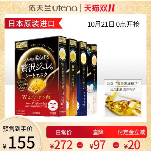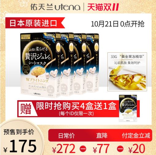 utena/佑天兰官方日本黄金果冻珍珠面膜补水保湿提亮正品女4盒装