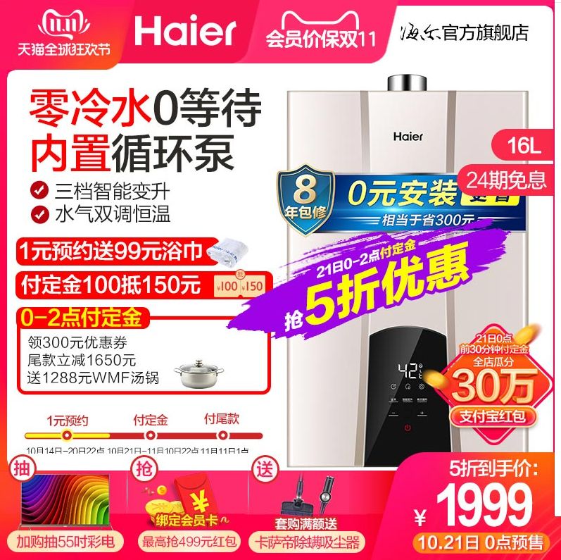 Haier/海尔 JSQ31-16WN3S(12T)恒温零冷水燃气热水器家用天然气
