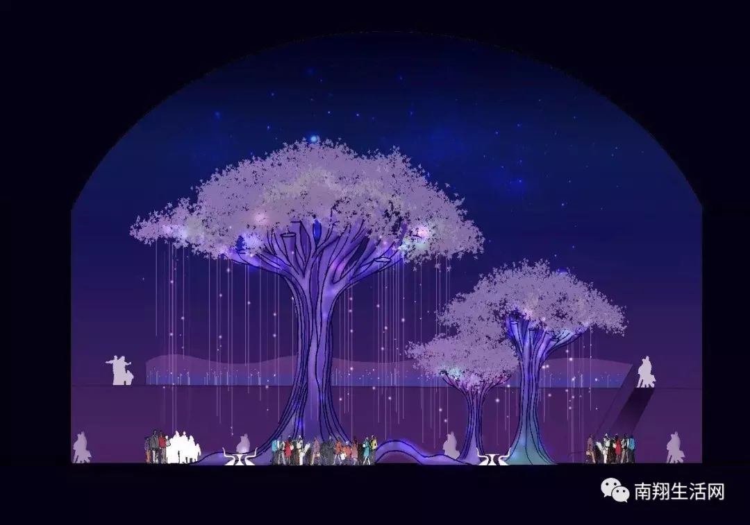 魔法广场生命树位于商业下沉式中庭,震撼形体丰满了空间,与多层商业产生互动,根部凸起与新型荧光涂料的应用为休憩提供了既自然又奇妙的体验。
