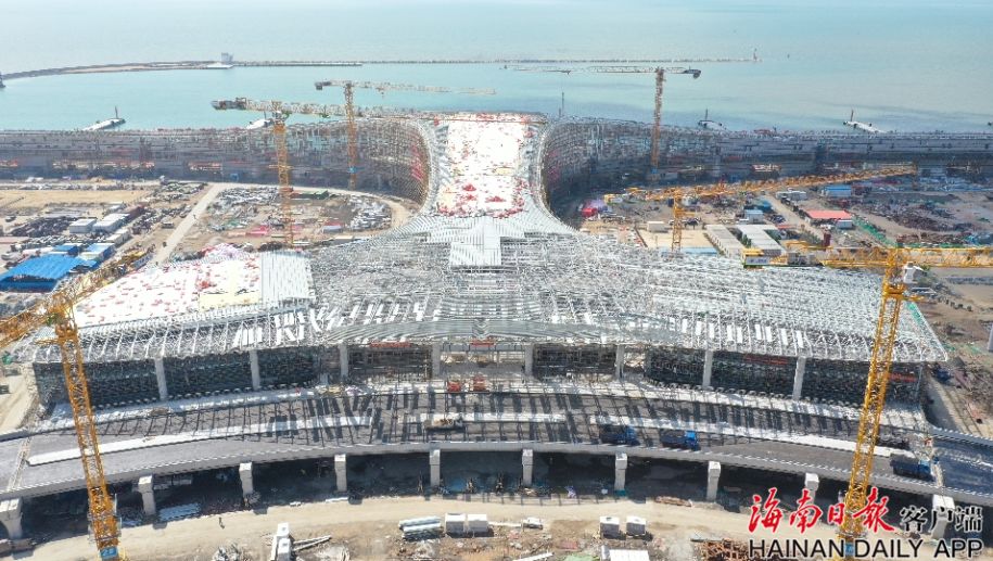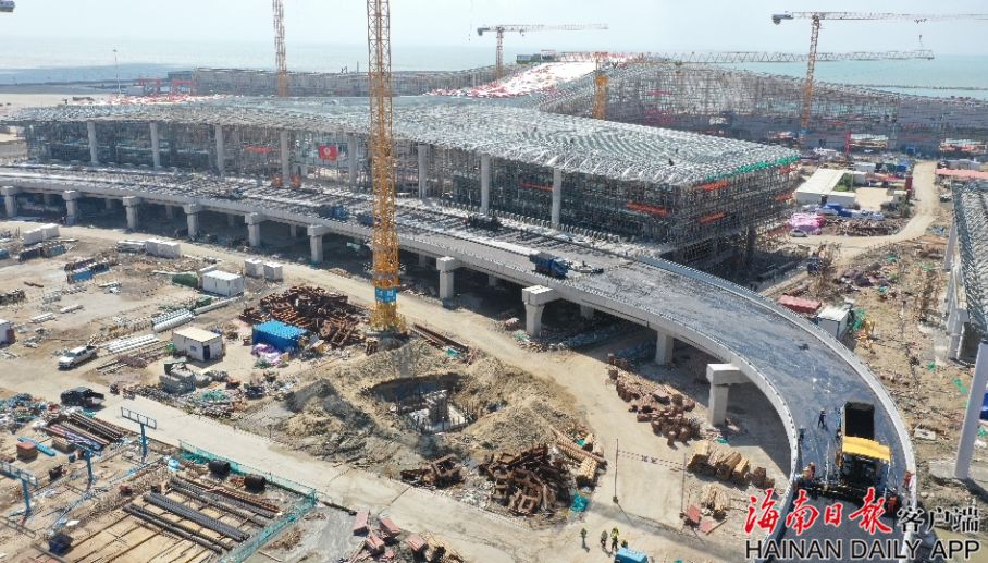 10月9日,海南日报记者在广东省湛江市徐闻港区南山客滚船码头工程(下称“徐闻港区”)现场看到,码头已全部建设完成,气势恢宏的综合枢纽航站楼也已雄姿初现,2000多名建设者在炎炎烈日下挥汗如雨,奋力赶工。