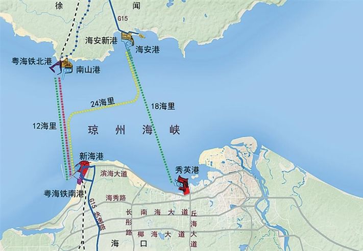 琼州海峡大通道轮渡运输线路图