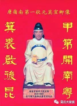 莫宣卿:(834-868),字仲节,号片玉,谥孝肃,岭南第一状元。唐文宗太和八年(公元834年)农历八月十七日出生在封川县文德乡长乐里(今广东封开县河儿口镇西村)。