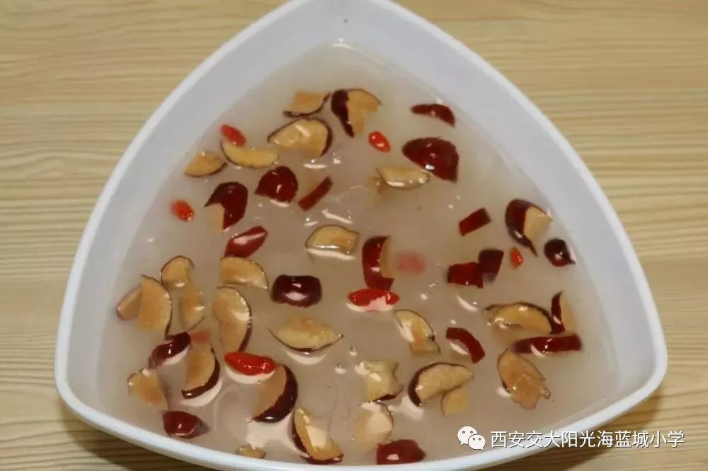 同学们,你们知道吃银耳对身体有哪些好处吗?银耳含有丰富的营养物质,适量食用的话会有滋补的效果。另外银耳中含有较多的天然维生素D,可以通过吃银耳来补充维生素D,从而达到防止钙的流失以及促进生长发育目的。同学们,营养要均衡可不要挑食哟!