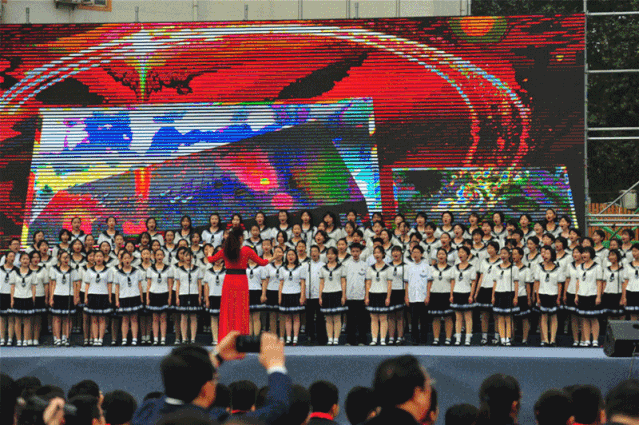 “我和我的祖国,一刻也不能分割……”歌声响起,红旗飘飘一颗颗赤诚的心共同唱响爱国情