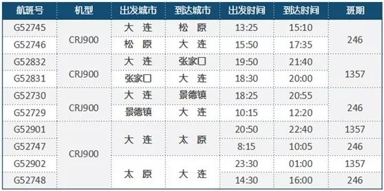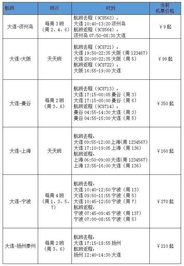 大连航线详细信息如下