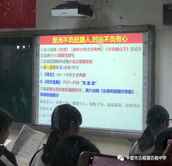 跑完操5分钟内同学们都已到达各自教室,老师提前把晨读目标内容准备好,早读时间投放到大屏幕,同学们站立诵读,达成目标即可坐下。