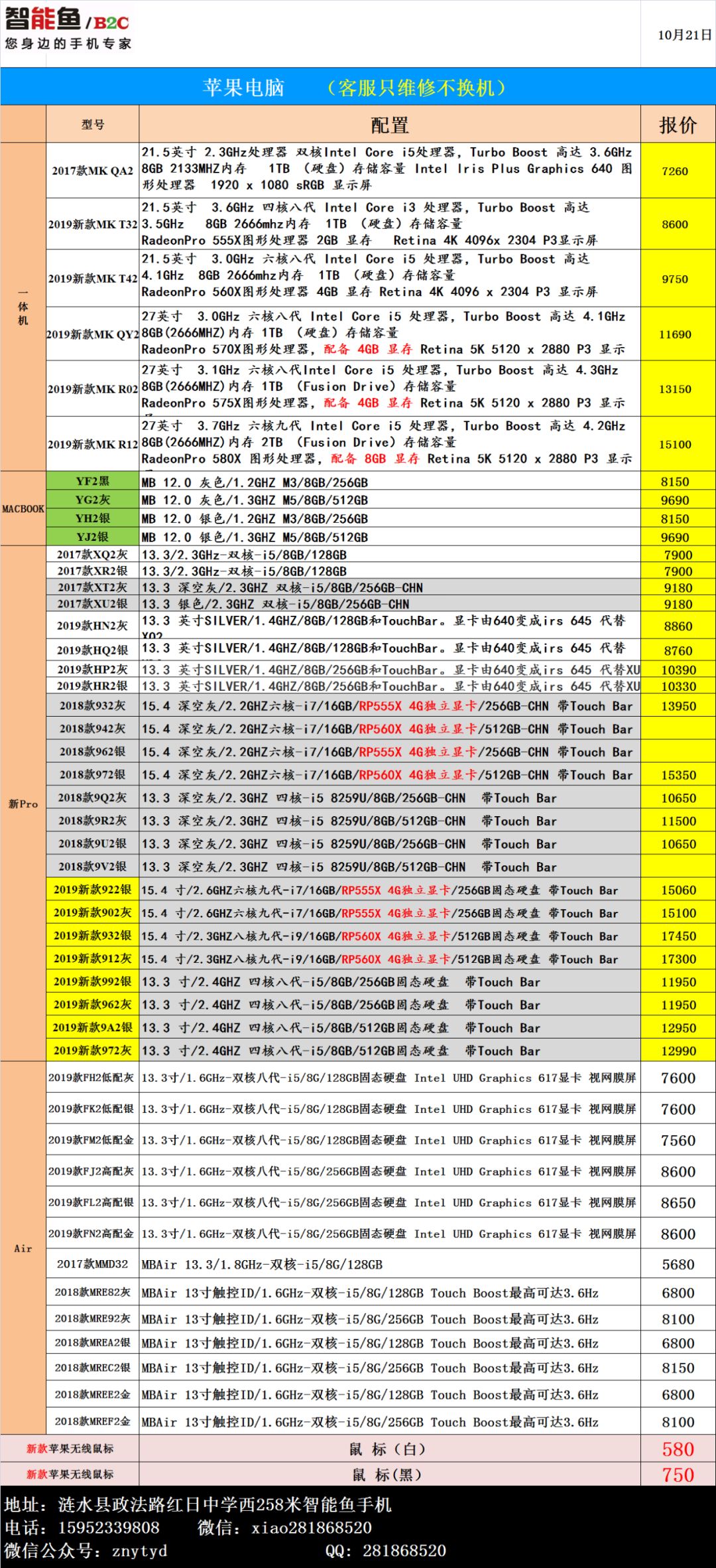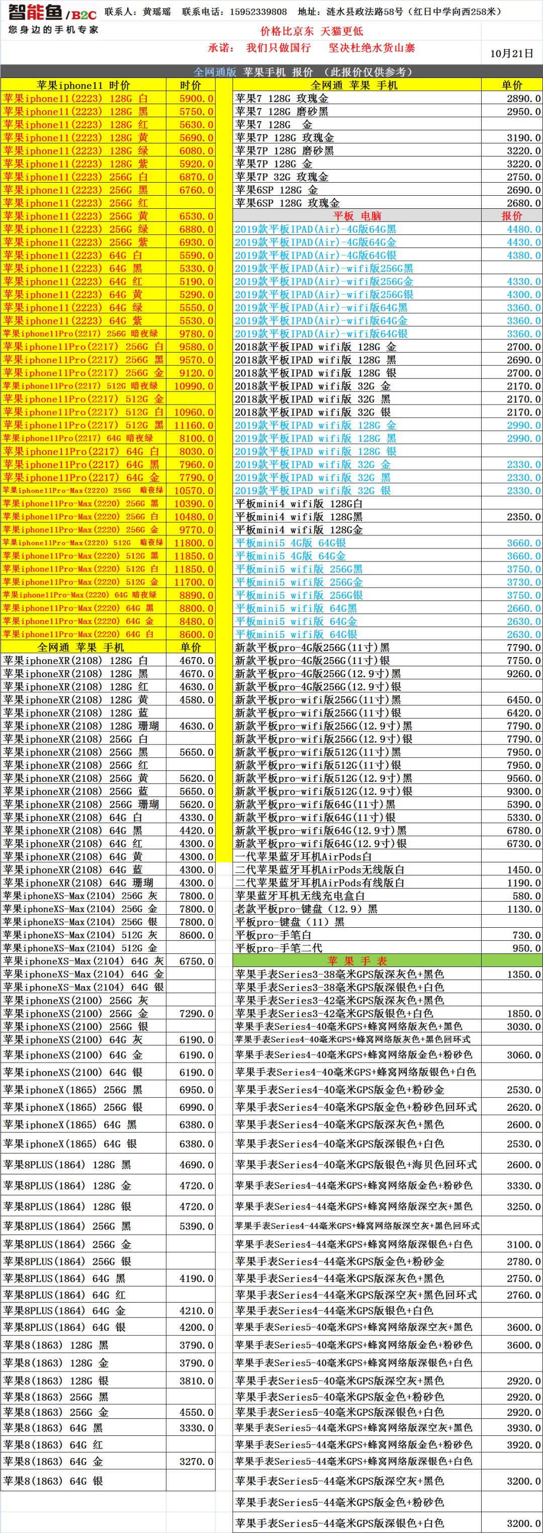 10月21日Apple手机+电脑 批发报价 智能鱼 新零售