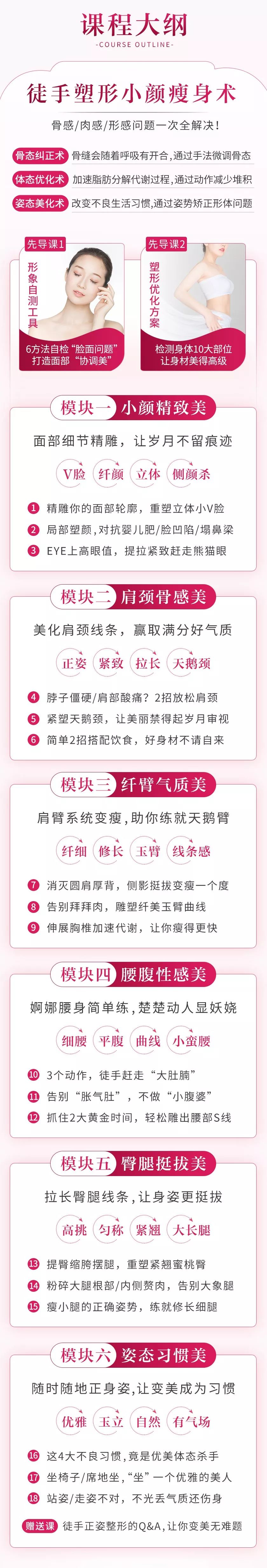 所以啊,如果你也想拥有小V脸和S型挺拔身材,非常推荐你参加张富源亲授、章子怡、SHE、陈伟霆亲测有效的《小颜瘦身徒手塑形术》。