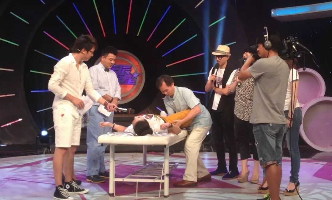 他受邀参加湖南卫视《天天向上》现场帮钱枫瘦脸,按摩5分钟后,钱枫的右脸真的瘦了不少,双下巴也不那么明显了。