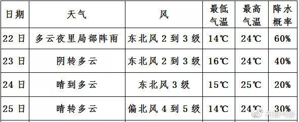 白天预计最高气温24、5℃