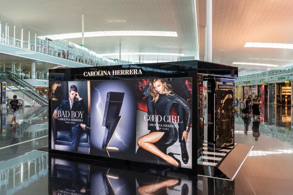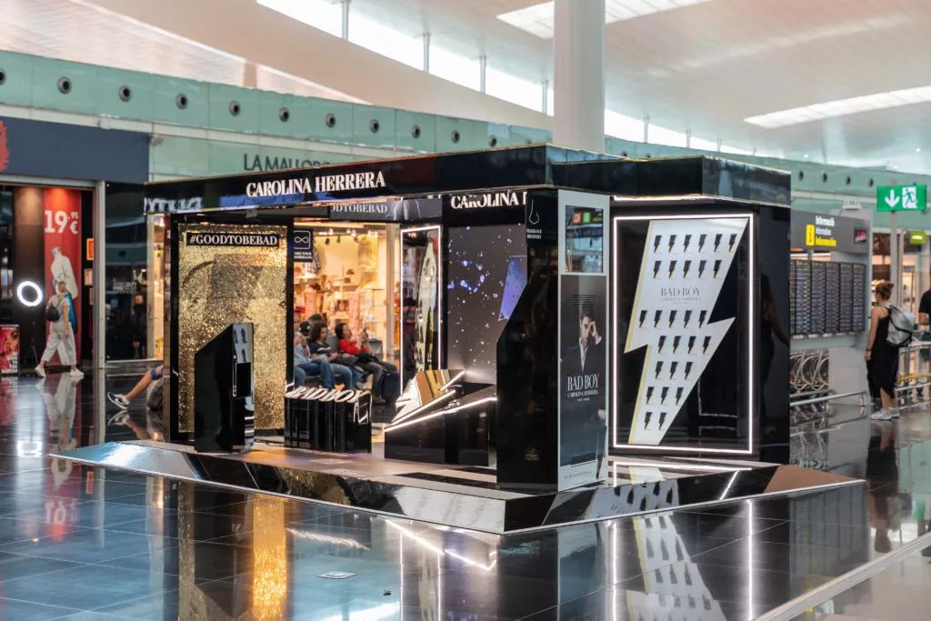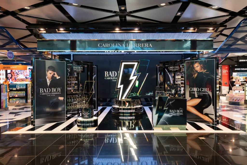 最近Puig集团在巴塞罗那机场设立Carolina Herrera Bad Boy(坏男孩)香水互动空间。