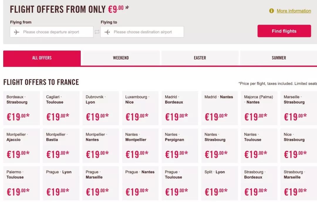 由于法国机场实在太多,小编只是选择了几个人流量较大的廉价机场作为例子,其他机场可直接戳以下链接查询?