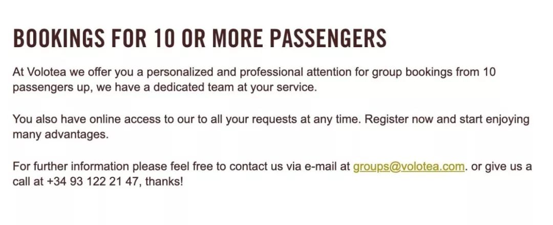 团体票邮箱:groups@volotea.com