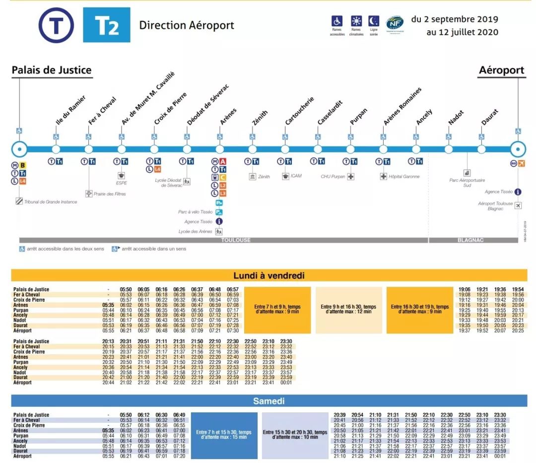 1.图卢兹市区轻轨T2直达机场(附上时刻表?)