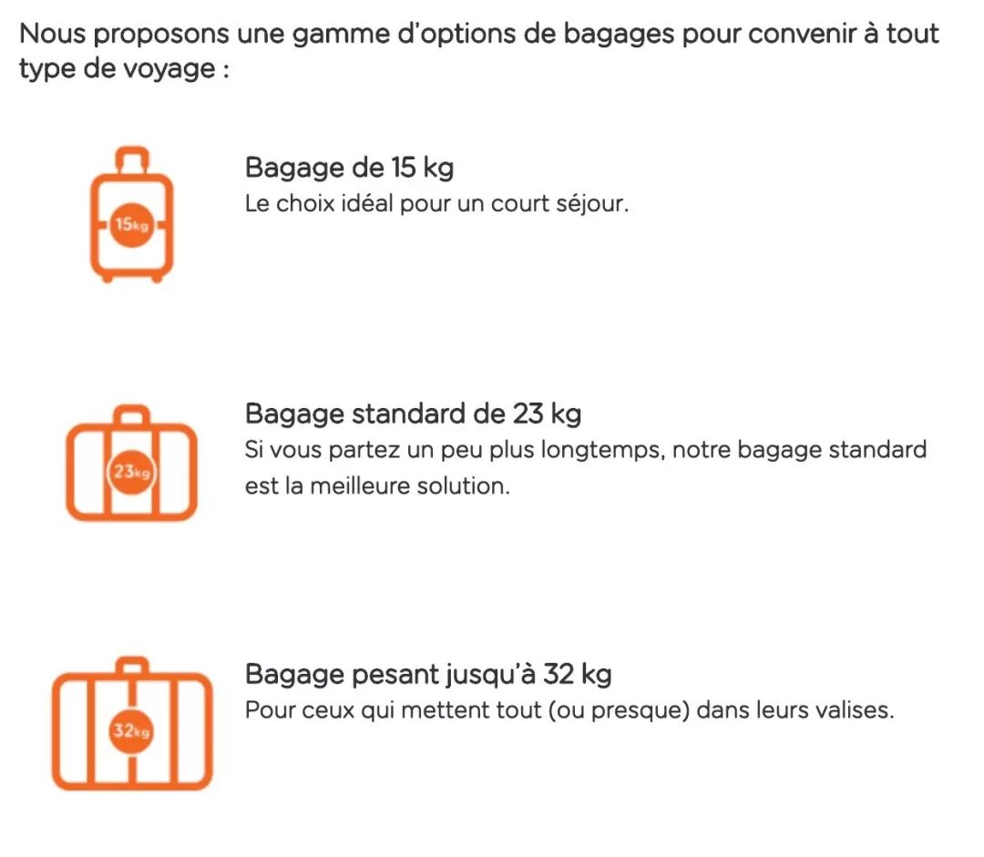 3.易捷航空附加行李可直接在自主网上值机时购买,费用为:15公斤内9.09 € - 45.49 €,23公斤内12.34 € - 48.74 €