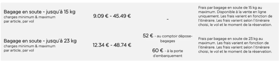 注意??:如果没有网上购买附加行李额,机场值机柜台现场办理价格为52欧;而如果没有办理直接登机,被工作人员逮到将会强制办理,收费为60欧