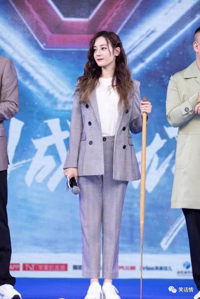 不止baby这样穿,就连迪丽热巴在近期的活动上也这样穿搭了,可见这样搭配的魅力有多大~迪丽热巴身穿一身灰色的西服套装,西装外套上面黑色的双排扣设计经典又大气。热巴在外套内搭配了一件白色的T恤,也是休闲又随性了。脚上一双小白鞋与T恤是同样风格的单品,所以搭配在一起简约又大方,很有气质女王的味道了~