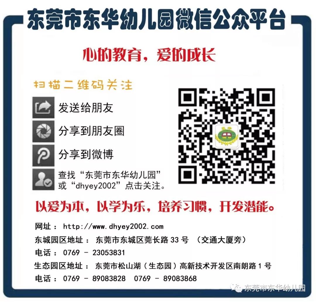 东华幼儿园是东华教育集团属下的一所全寄宿制民办幼儿园。现有东城园区和松山湖生态园区,两园区共有幼儿1千多名,教职员工300多名。幼儿园一直秉承“以爱为本、以学为乐,培养习惯、开发潜能”的教育理念,以培养“健康、快乐、合作、自信”的一代新人为己任,以严谨的管理、优美的环境、优良的教学品质、以及一流的服务赢得家长和社会的一致认可。