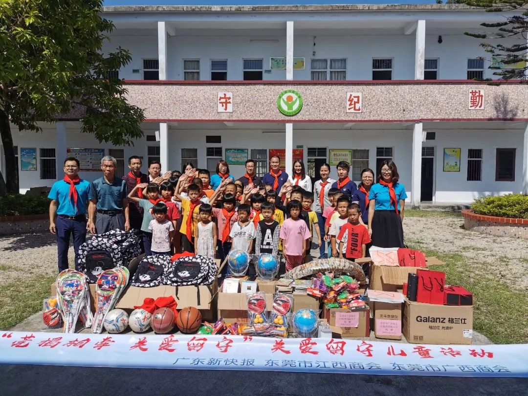 10月17日,我国第六个扶贫日,为贯彻商会党支部“不忘初心 牢记使命”的主题教育工作会议精神,积极开展“扶贫日”主题党日活动,东莞市广西商会联合广东新快报、东莞市江西商会一行10人赴揭西县坪上镇四新小学,开展“莞揭情相牵?关爱留守儿童”慰问活动,商会副会长杨有保、周莹莹,秘书长张琳,会员兰秀眯参加活动。活动一行为学生们送去学习、体育及生活用品,随后,参观了教室及其他爱心人士捐赠的教学用品,详细了解了学校及学生们的学习生活情况。慰问结束后,活动一行与四新村村委领导进行了座谈交流。会上,驻村第一书记雷建云对捐赠单位的善德之行、大爱之举表示衷心感谢。本次活动负责人商会秘书长张琳、新快报东莞记者站站长杨英杰、东莞江西商会秘书长杨英也分别在会上发言,他们表示,下一步,将继续号召更多的社会力量为参与爱心助学,为贫困地区打赢脱贫攻坚战贡献力量。今年3月、6月,由东莞市广西商会联合广东新快报、东莞市江西商会共同主办了“友善东莞时代同行”2019东莞万众徒步迎春公益行活动、“友善东莞”第三届“黄飞虎”万众徒步公益行活动,共筹集善款近10万元。针对四新小学由于资金困难,没有较好的教学设施设备的实际情况,通过东莞市妇联的实地调研考察,徒步活动主办方将善款用于四新小学打印机、电视机、多媒体电教设备、体育用品、图书及玩具等办公及教学设施设备的购置。来源:东莞市广西商会
