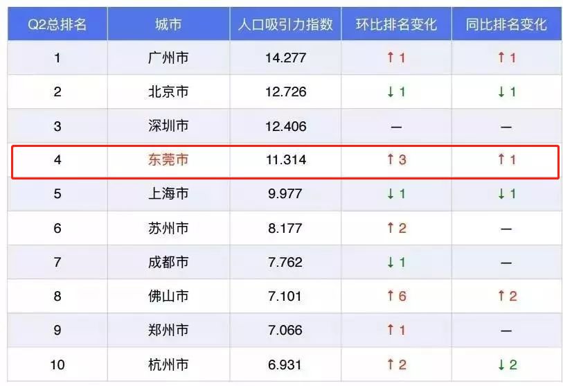 广州凭借14.277的人口吸引力指数,妥妥地赢了北京和深圳,稳居榜首TOP1!而东莞首超上海!跃居榜单第4名。