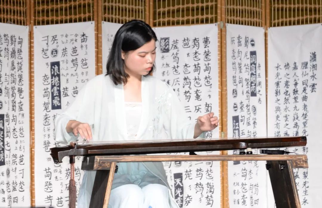 古朴的古琴,配上琴箫、洞箫、笛等民族乐器,并与插花、舞蹈、朗诵、武术等艺术形式跨界合作,演绎出一场别开生面的古琴音乐会,尽展古琴传承千年的艺术魅力,让现场师生加深了对古琴的理解和欣赏,古琴作为中国传统高雅艺术的典型代表,中国文化博大精深的精神气息渗透到琴声中,形成了朴素儒雅的独特艺术气息,古琴文化的发扬是对中华民族优秀传统文化的延续。
