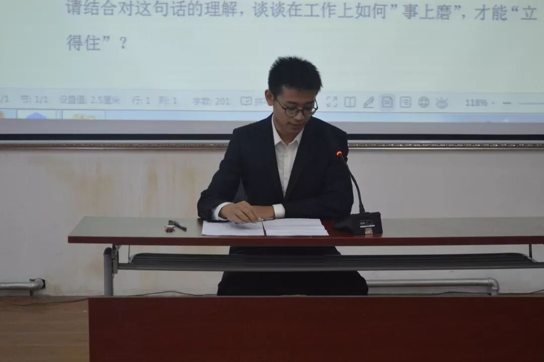 面试场上,参赛选手身着正装、举止大方,身上已经初备公务员的形象气质。只见他们正坐于评委席前,时而低头审题,时而挥笔构思,时而眉头紧蹙,时而笑颜舒展;同时,选手的一举一动也都被评委老师尽收眼底,达到了很好的考察效果。
