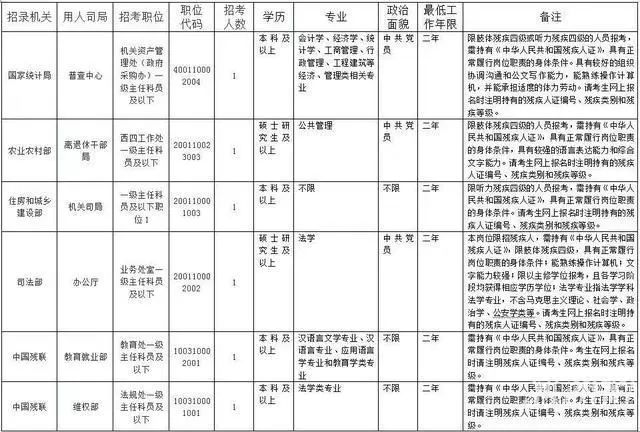 从招录信息中,记者发现,除司法部要求法学硕士及以上学历外,其他的5个岗位均要求为本科及以上学历。从专业要求看,法学、语言学及应用语言学、社会管理、会计学、经济学都是所需要的人才。从残疾招录类别看,没设过多门槛,但必须持有残疾人证,有的岗位限肢体四级、听力四级残疾人报考。