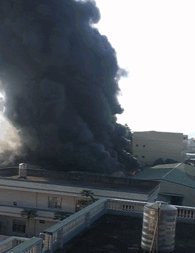 09东莞一塑胶仓库突发大火 现场浓烟滚滚