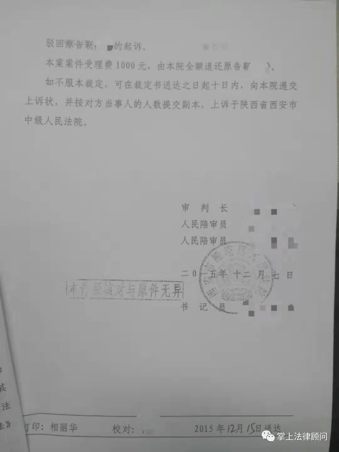 (上图:本案的法院裁定书末页原文,文书案号:(2015)雁民初字第00015号)
