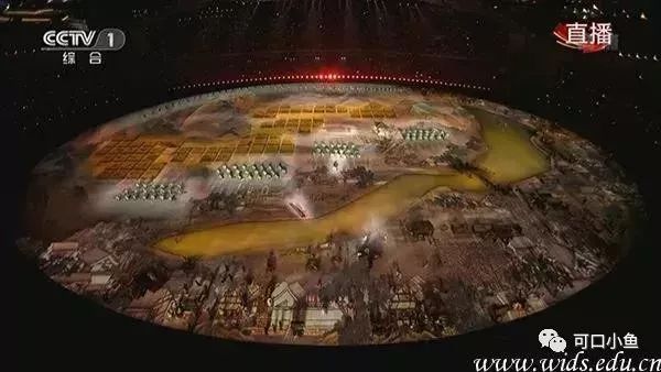 武汉设计工程学院在当晚的开幕式上,《江山如画》《丝绸之路》两章表演用唯美热闹、极具中国风的演出为观众上演了一场真人版“清明上河图”。