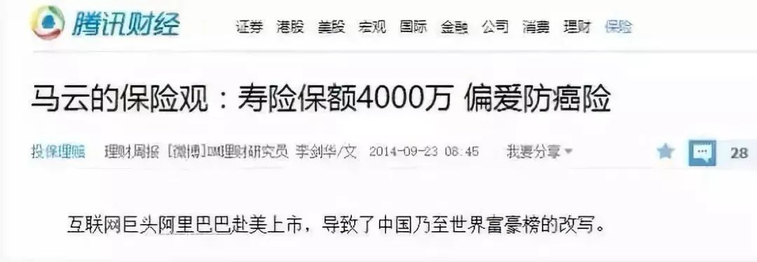 不仅如此,马云对保险的认知也高于常人,我们来回顾一下这些年马云关于保险金句,每一句都是一笔财富。1中国应该有13亿保民股市发展有股民、网络发展有网民,保险发展也要保民。据说现在保民已经有3.3亿,人数上是股民的3倍。我觉得还太少,保险应该保障的是所有人,不是3个亿,而是13亿。
