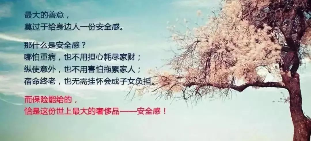 我觉得保险行业,应该是中国最大的善事,因为你的使命是让每一个人感到安全,特别是让社会底层的人得到最稳定的确定性,有了这种确定性,社会才会进步,才能真正繁荣。