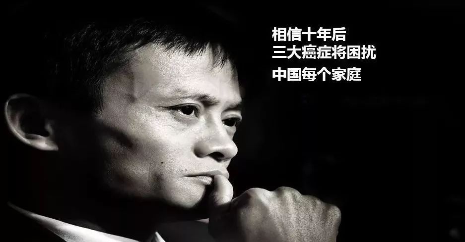 210年后三大癌症将困扰每个家庭马云5年前在一次演讲中曾经提到:10年后三大癌症将困扰中国每个家庭,【肝癌】,很多可能是因为水;【肺癌】,是因为我们的空气;【胃癌】,是因为我们的食物,最担心的是挣的钱不够医药费,没想到这刚过去5年却一语中的。