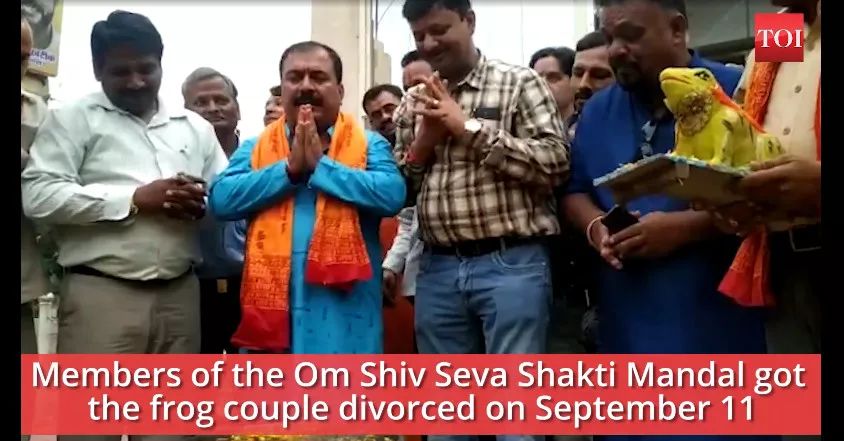 为了赶紧止住降水,他们决定,要不……还是…让那两只青蛙离婚叭……虽说感情诚可贵,但这么多人的身家性命更重要啊。9月11日晚上,当初给青蛙办婚礼的那拨人,又聚集在一起,给它俩举办了离婚仪式。