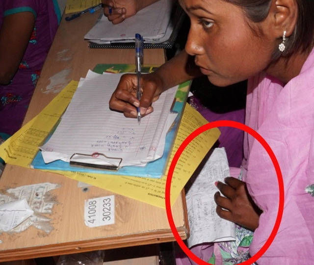 当然,作弊之道,家长送答案还是借助外力,印度考生们自力更生,创新不断,女生裙下也有妙招!