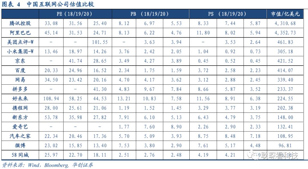 1互联网公司估值比较