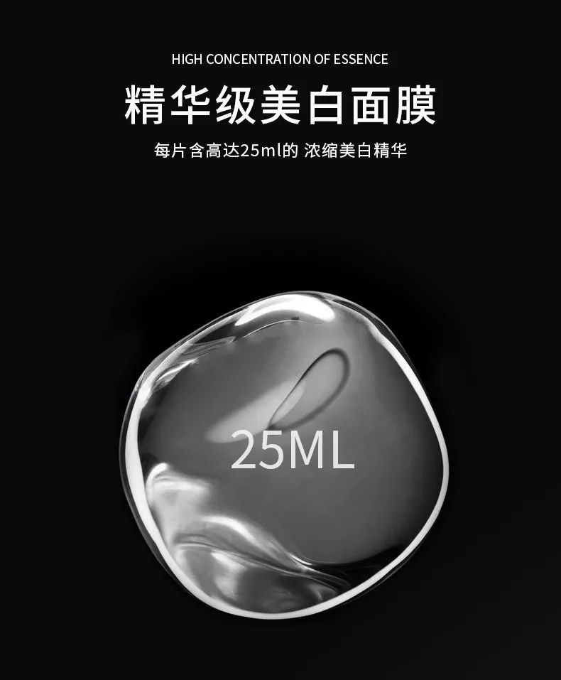 每片高达25g的超浓缩精华液,相当于1瓶原液的容量。敷一次相当泡1瓶精华在脸上,水润的效果可想而知。
