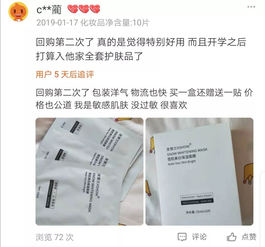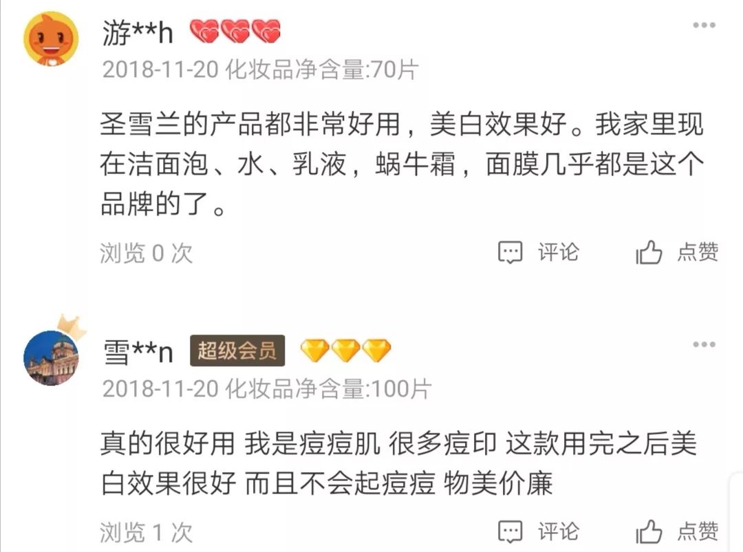 在文章下面评论,写出你喜欢这款产品的理由,我会抽2位留言用心的读者,送出本文中的圣雪兰面膜1盒