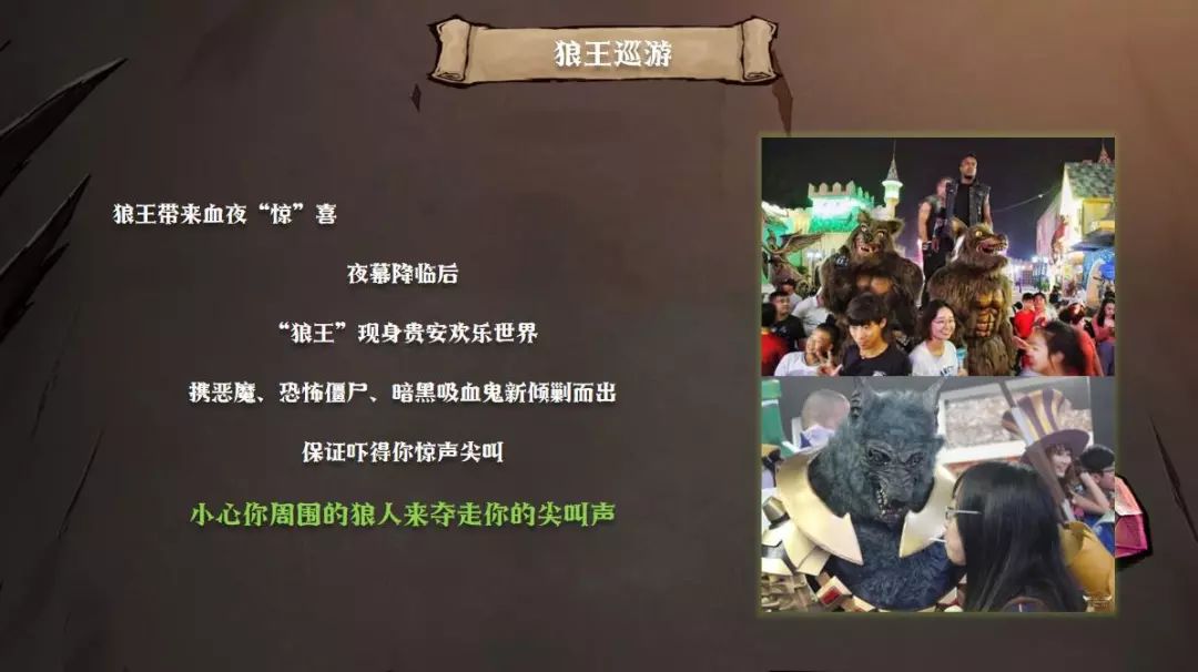 此次深度合作,《狼人杀》还让游戏场景“穿越”到景区,打造全新之旅。网易公司《狼人杀》游戏中出现的人物及剧情,将在贵安欢乐世界实体上演。“猛鬼狼人村”、“天黑请闭眼”、“现场狼人屋”等等从线上走到了线下,将带来完全不一样的体验。