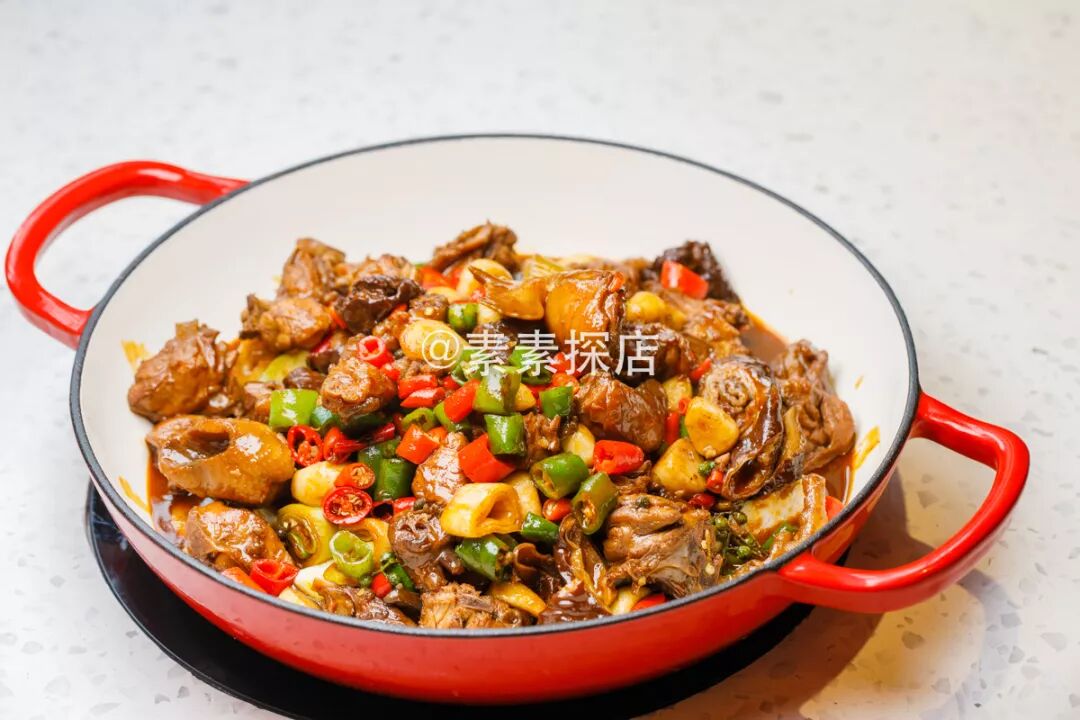 用盖浇鱼的同款架势,端上来这样一满锅肥肠鸡,又一波热辣沸腾被开启。