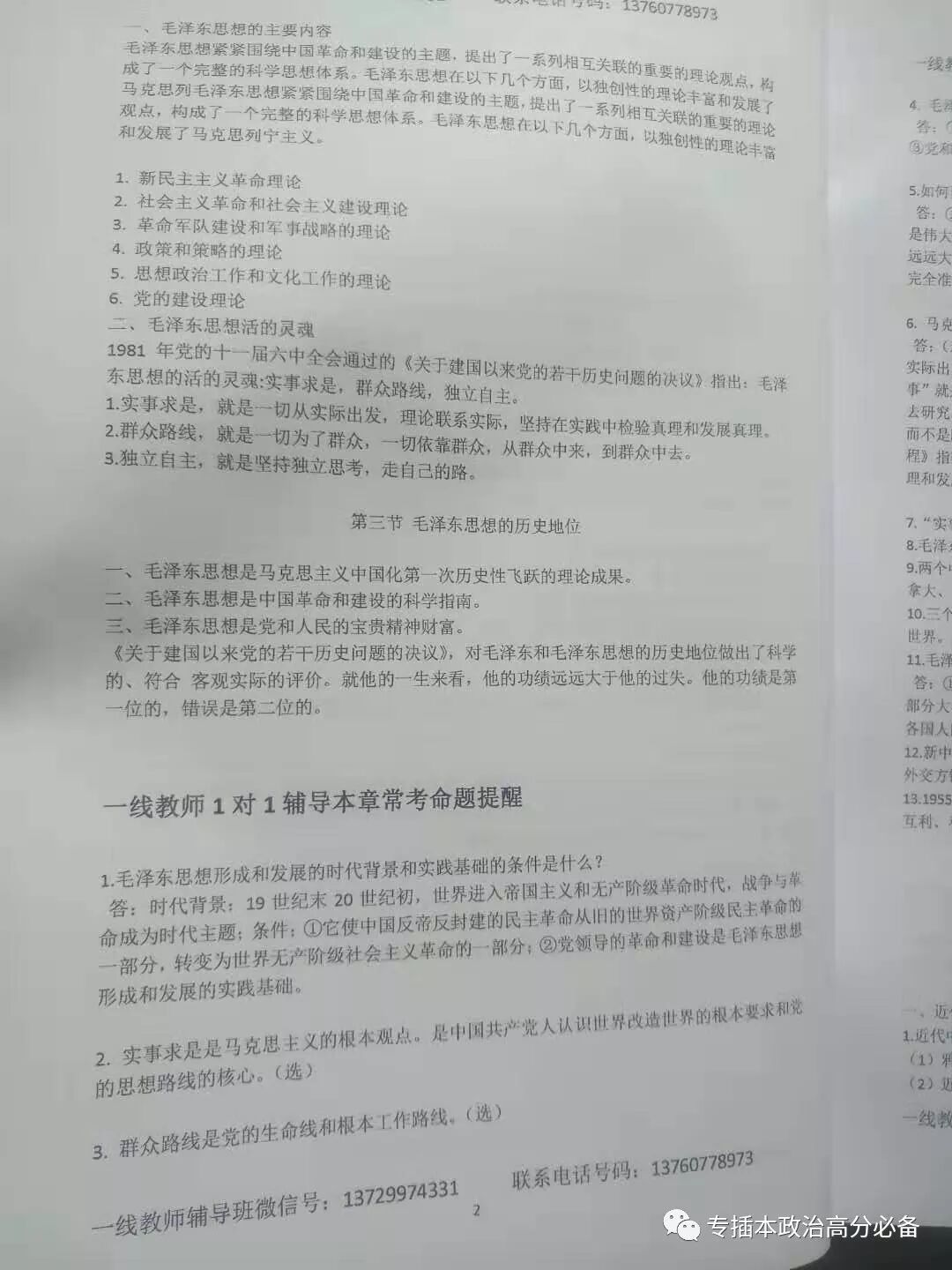 2020年广东专插本公共课1对1辅导资料和题库一、政治理论: