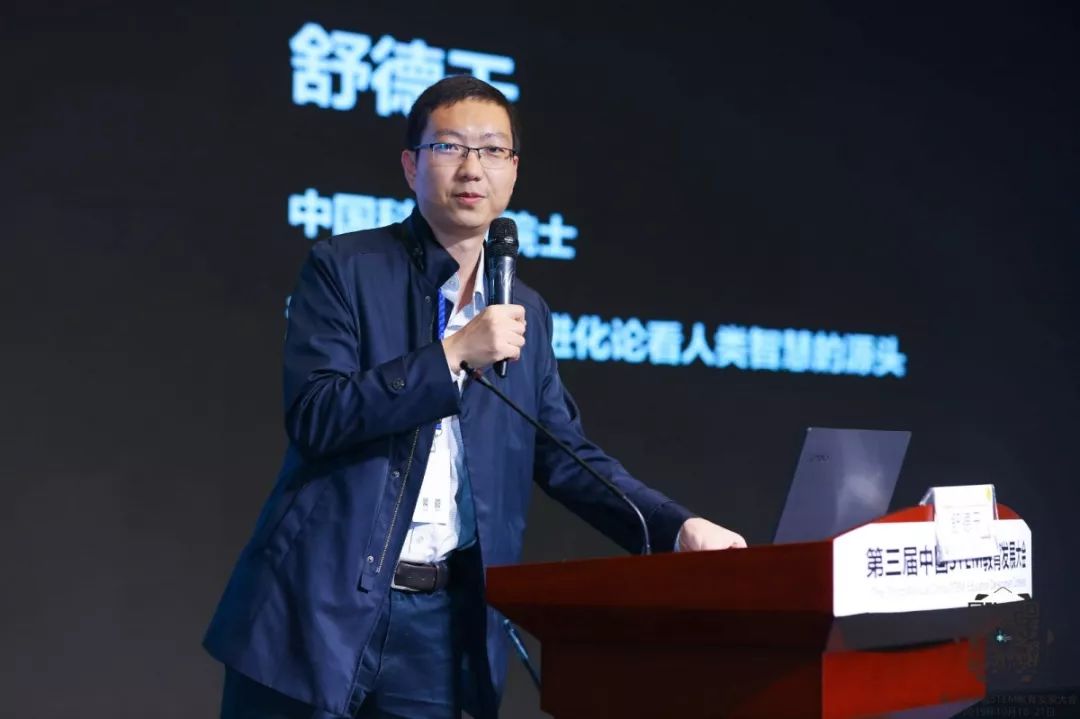 舒院士从进化论视角谈人类智慧的源头。而智慧的起源,涉及到人工智能,无论人工智能和其它的智慧都是来自于脑的。舒院士带领参会嘉宾从生命进化的角度追问,我们的人类最早的源头在哪里,演化路径是怎么样的,通过几个生动有趣的故事,从中领悟出进化论精神的伟大。