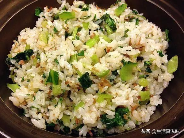 是用肉和青菜,搭配剩饭做成的饭,工艺是炒,这个菜饭,可根据自己的喜好选择原料的多少,喜欢菜的多放菜,喜欢肉的多放肉。当然,在从前的贫寒岁月里,当然是青菜唱主角而少有肉的身影了。