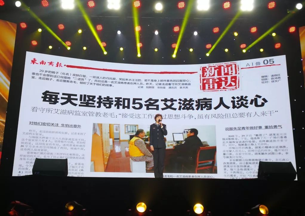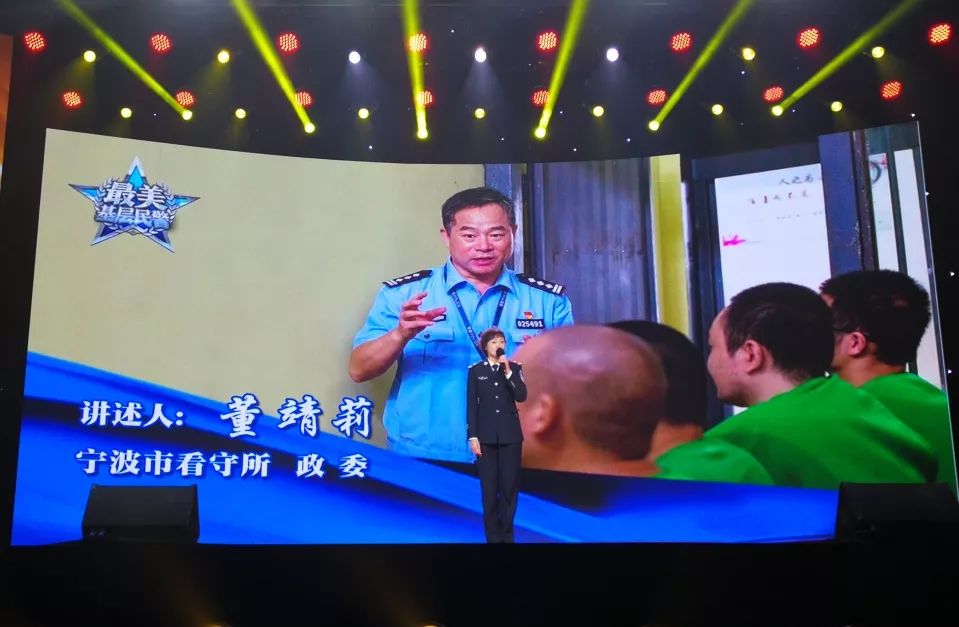 毛卓云登台 在评委观众们都观看完毕毛卓云的事迹短片后,宁波市看守所政委董靖莉深情地讲述了毛卓云坚守工作岗位十余载,默默耕耘付出的故事,在场观众听毕无不为之动容。