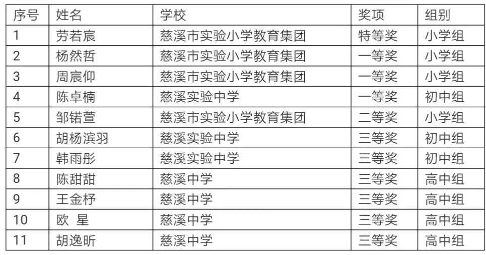 宁波市第四届中小学生“学宪法讲宪法”演讲比赛(慈溪获奖名单)
