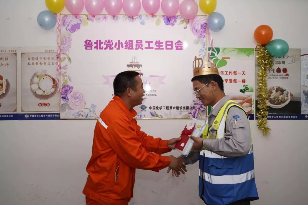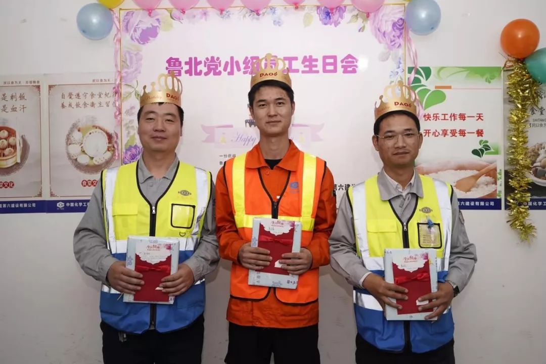 10月18日,中国化学工程六化建山东分公司鲁北党小组在项目部食堂为10月份过生日的三位员工举办了一场温馨的集体生日会。
