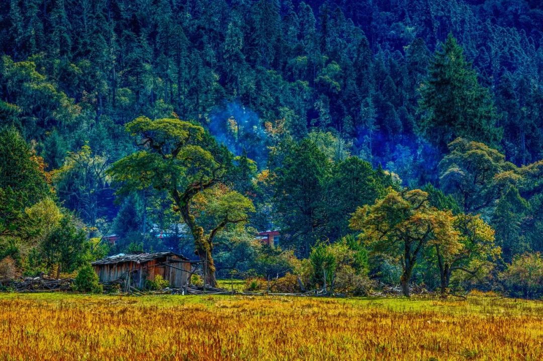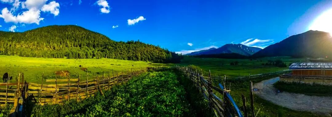 “西藏江南”,入眼便是满眼绿意,两侧青山云杉、松树茂密,中间草甸溪流蜿蜒,鸟飞鱼落,入眼便是世外桃源。