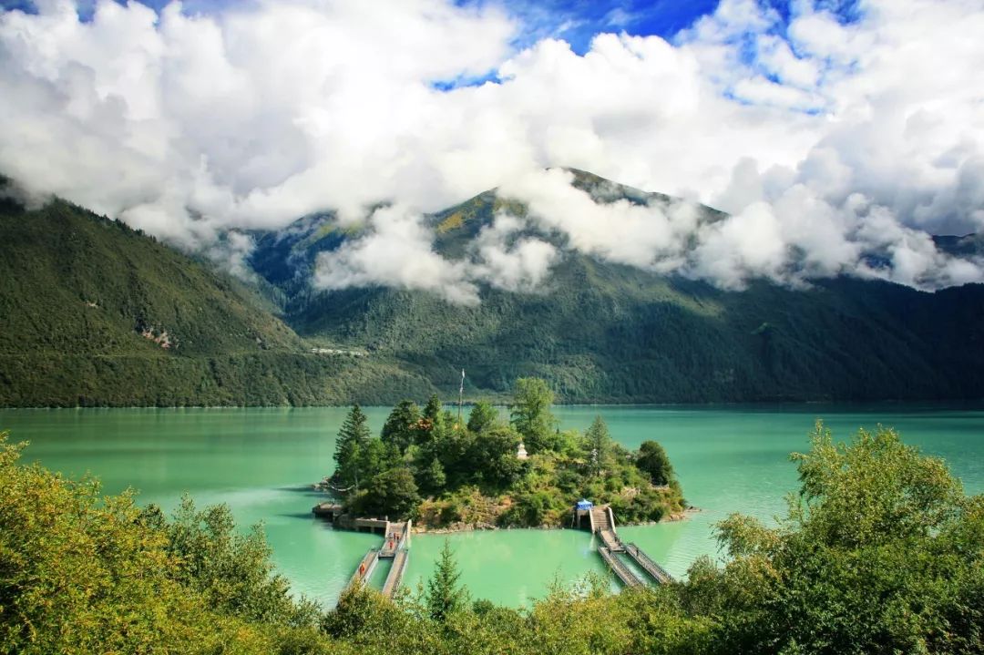 高原上的一汪翡翠,藏语意为“绿色的水”,是红教著名神湖。这里有雪山、湖泊、森林、瀑布、牧场、古迹,四季美景天成,号称人间天堂,“小瑞士”。