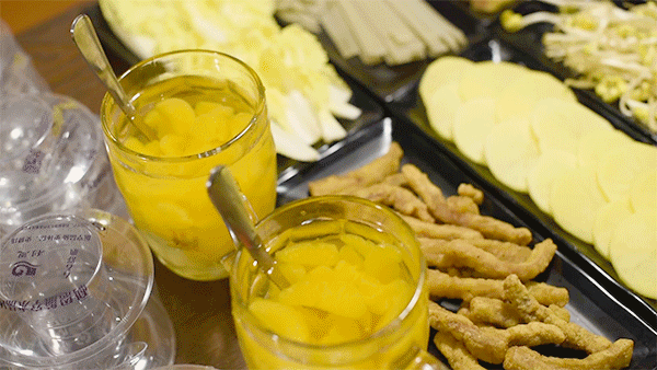 酥肉 1份鸭血 1份鱼豆腐 1份素菜:娃娃菜 1份金针菇 1份土豆 1份豆芽 1份四川宽粉 1份饮品:黄桃饮品 2扎