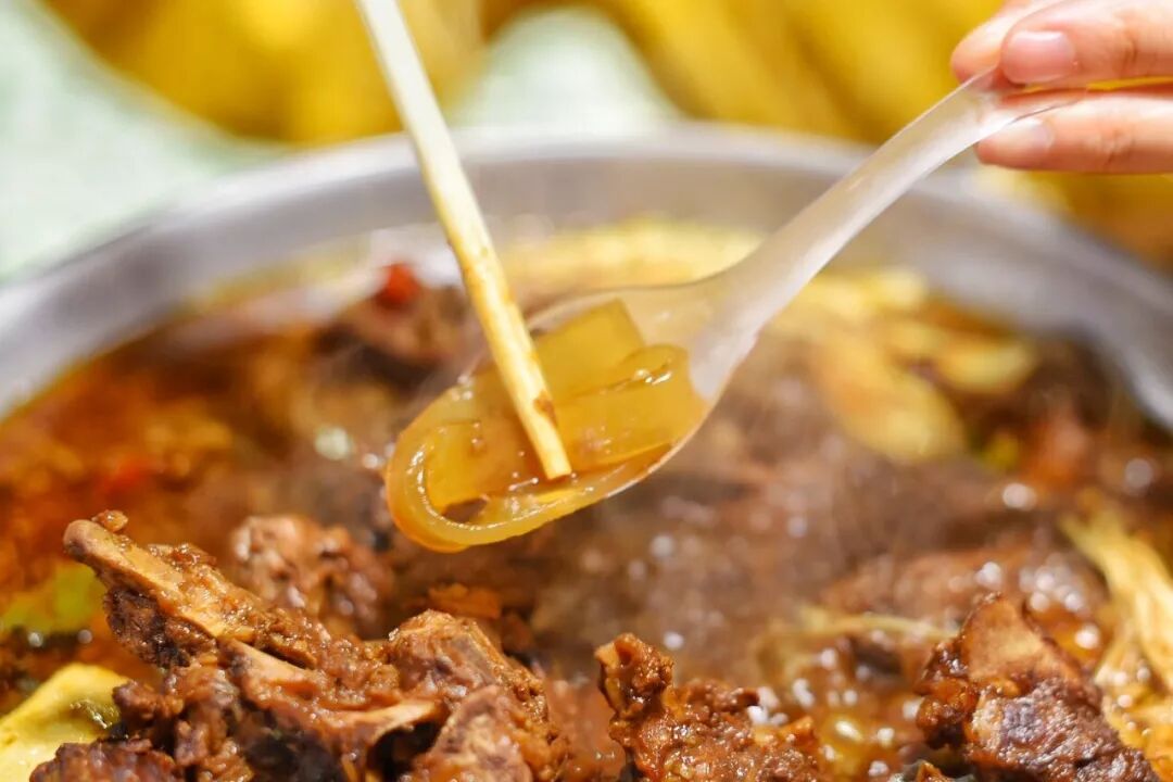 鲜香味浓 的羊蝎子锅就不要再叠加大肉了